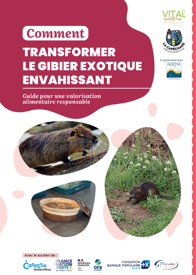 C’est bien tout l’intérêt de la très récente mise à disposition des travaux réalisés dans le cadre de l’étude-action VITAL, pour « Valorisation des Invasives par la Transformation Alimentaire Locale » sur le bassin de Thau. Menés par le Foodlab « La Capéchade » en collaboration avec l’ADENA, association gestionnaire de la réserve naturelle du Bagnas, ils rassemblent dans un « Kit VITAL » (téléchargeable ici) quatre documents, dont un conçu comme un guide méthodologique global, accompagné de trois livrets ciblant « espèces végétales », « petit gibier » et « écrevisses non autochtones ».