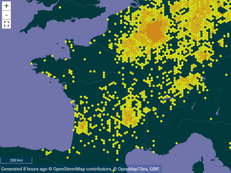 Cet extrait de la carte du GBIF (accès du 6 octobre) de la répartition de l’espèce illustre d’ailleurs très bien les zones où des populations sont installées depuis longtemps.